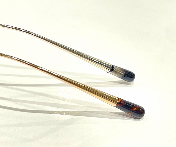 オリジナル型のテンプルには弾力性のあるベータチタンを使用し、左テンプル先の色変え部分にはアセテート素材を使っています。