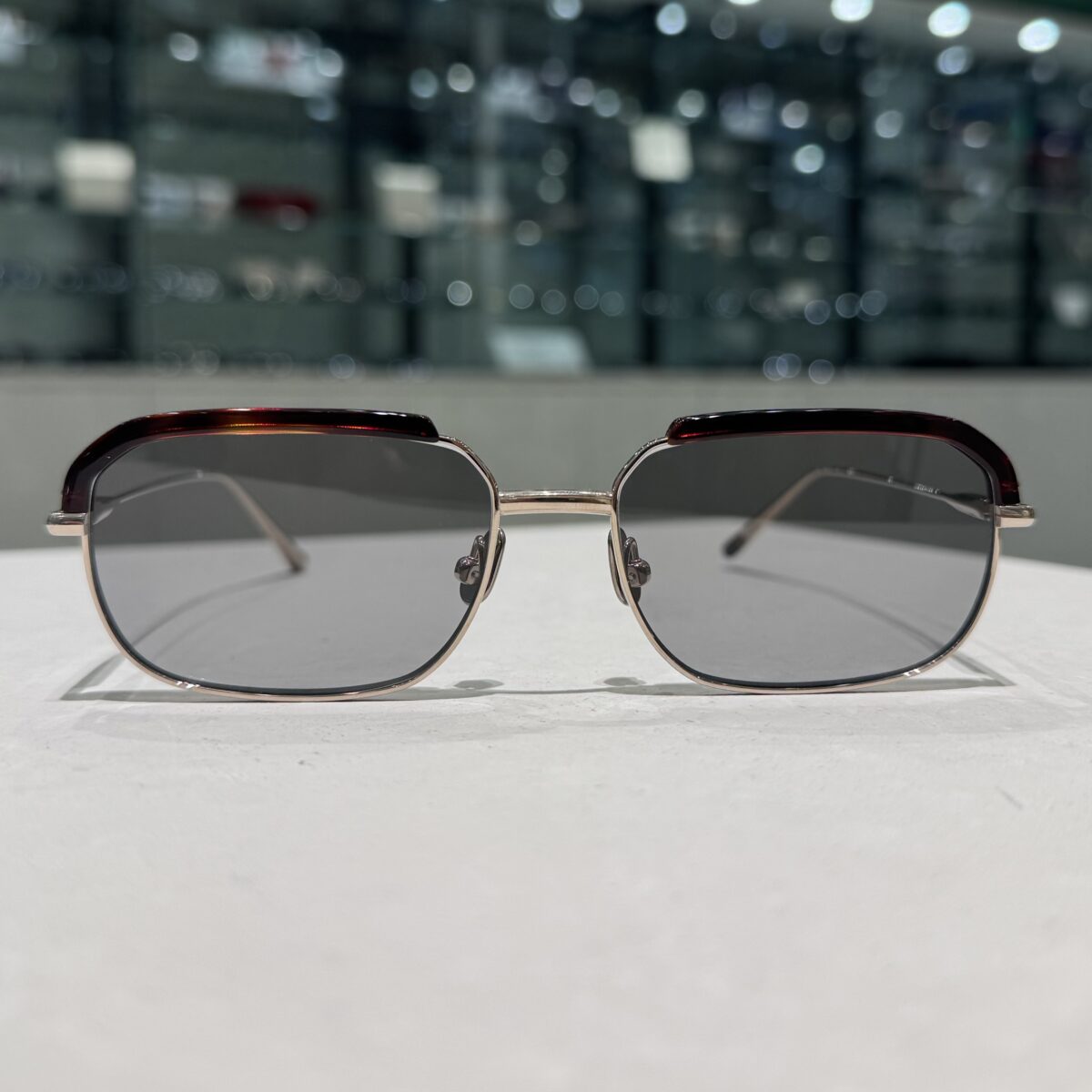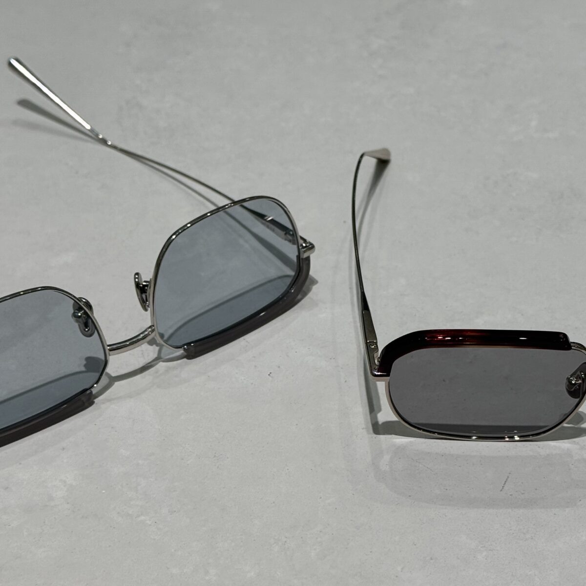 アセテートのブローパーツが付いたメタルのスクエアシェイプサングラスです。