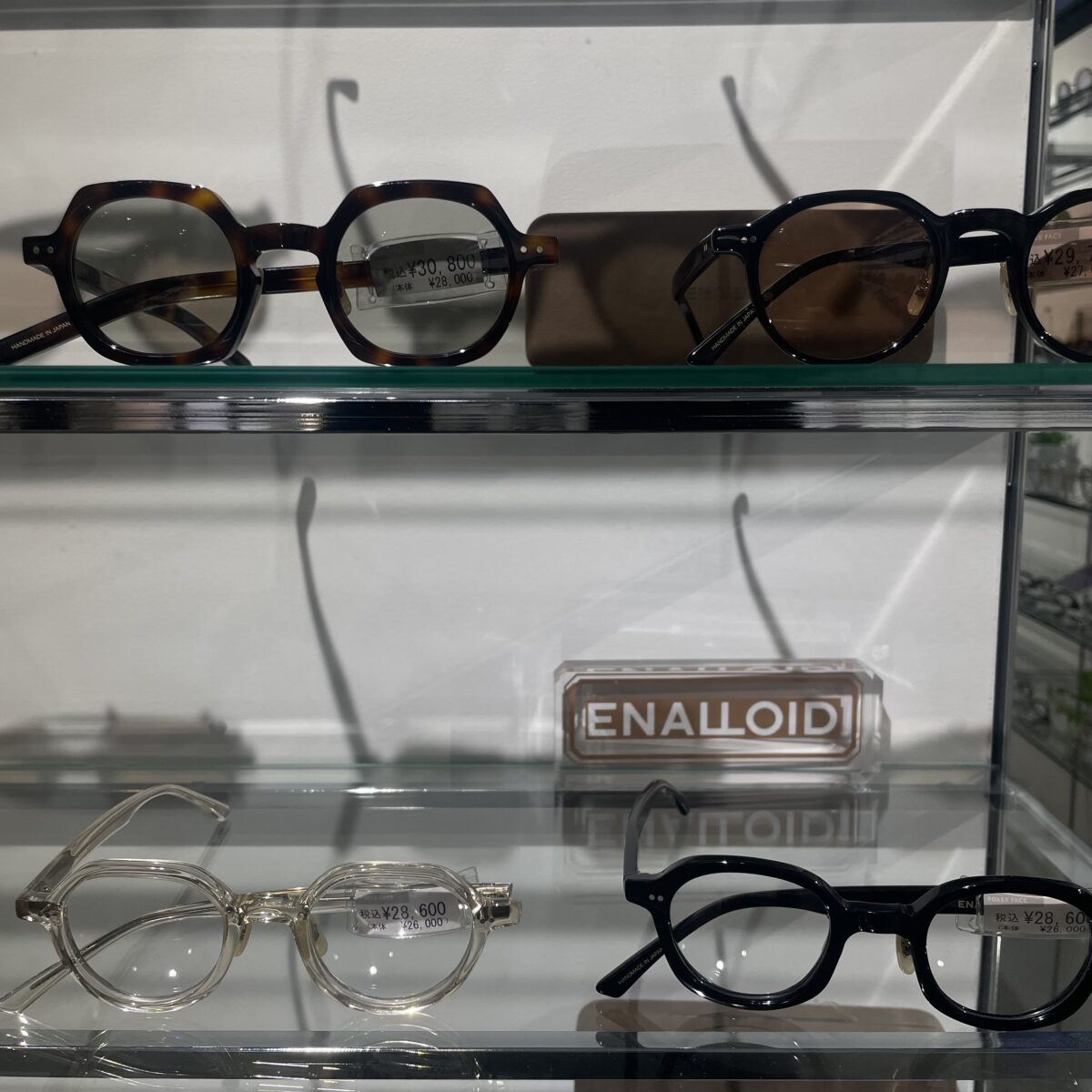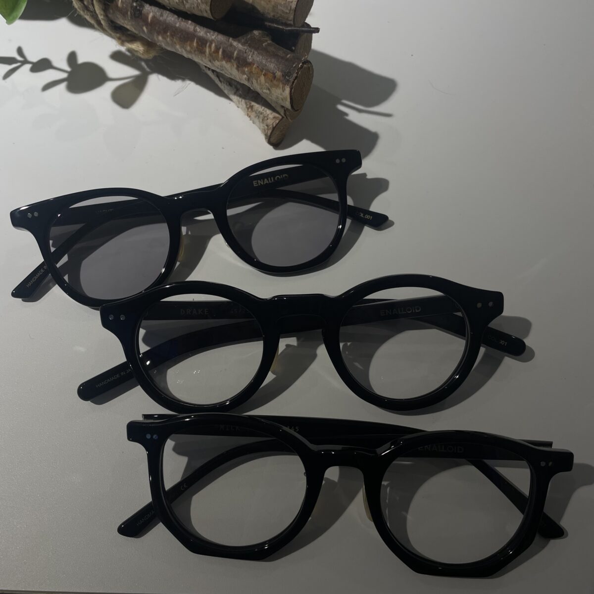 どのモデルも、ベーシックながらも一部分に特徴のあるエナロイドらしい眼鏡です。
