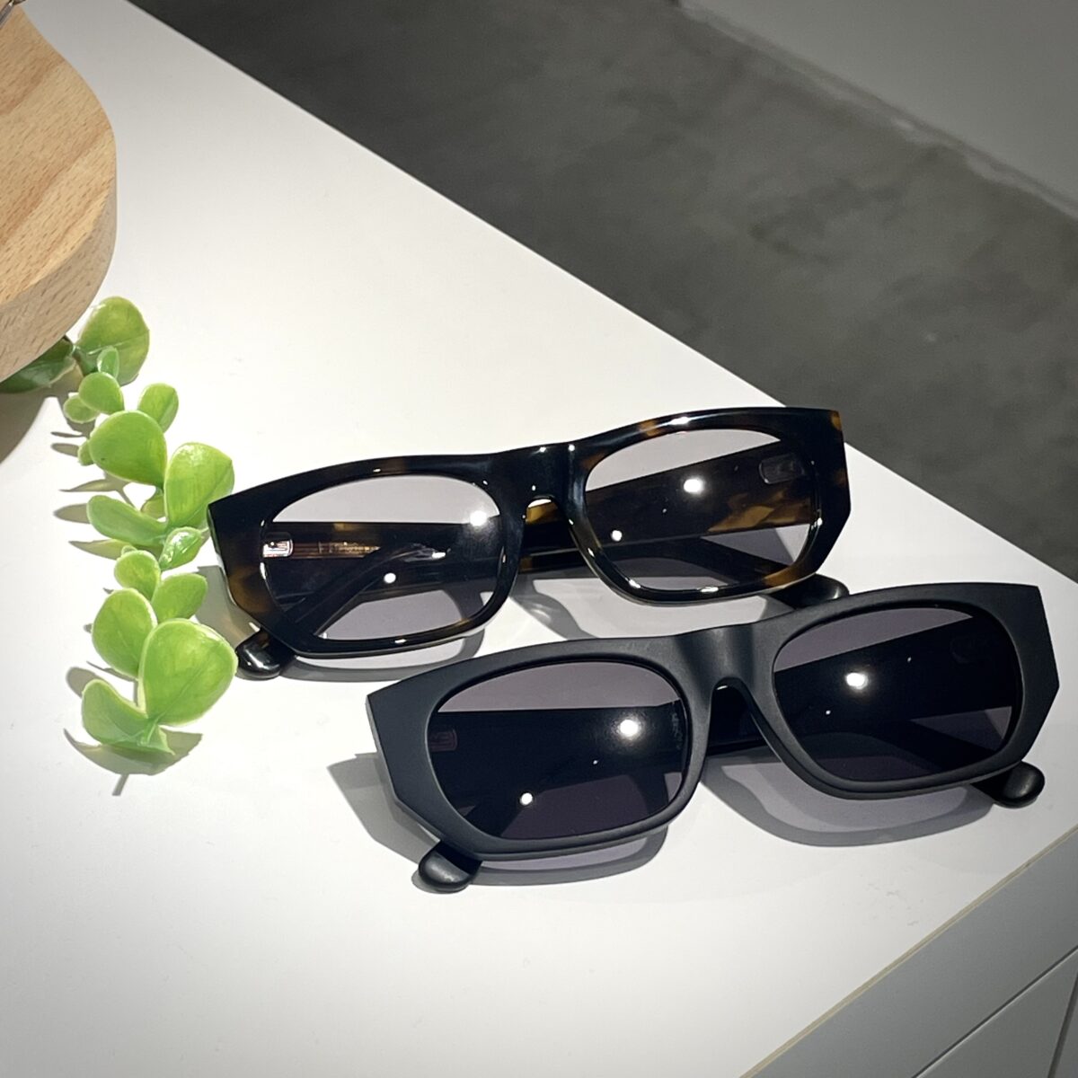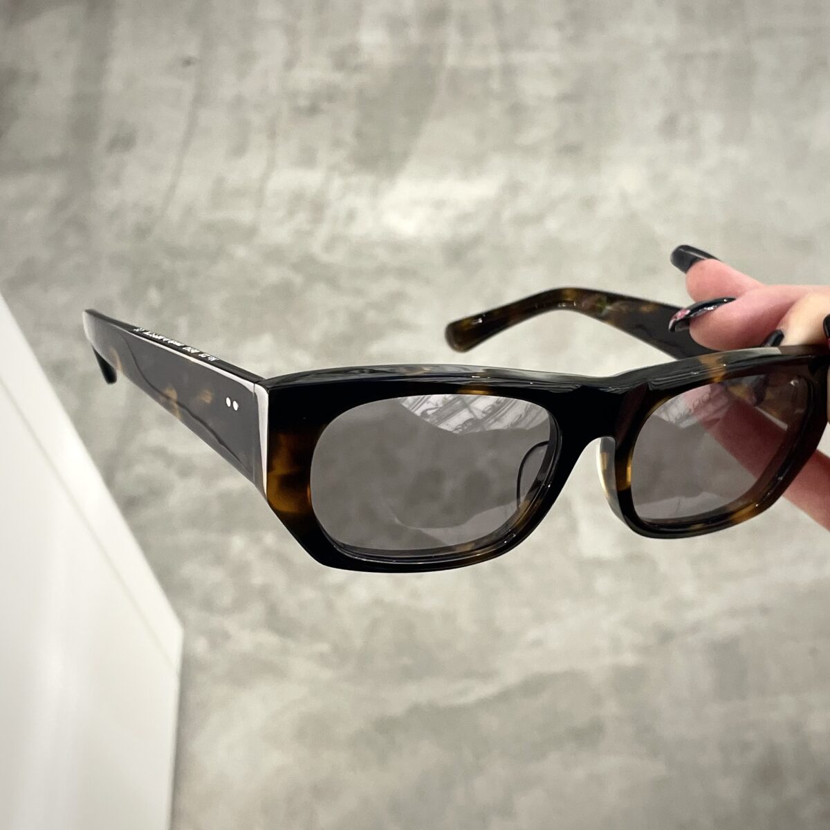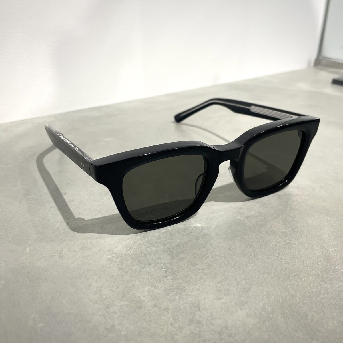 幅広のテンプルが合わさったエッジのあるスクエアスタイルで