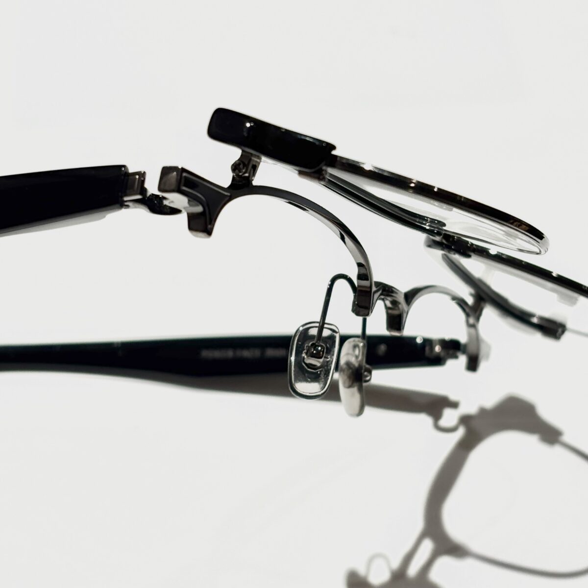 人気の跳ね上げM-96シリーズより、フロントデザインは天地が浅くすっきりとした印象の「M-15」をベースにデザイン。あくまでベーシックなデザインを追求し、タイムレスに掛けることのできるフロントデザインをミリ単位で調整。クラシックな雰囲気を与えながら、機能性と美しさを両立させています。