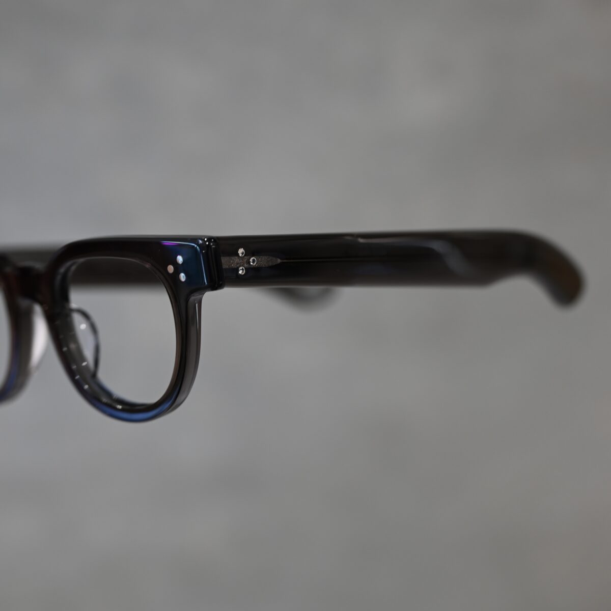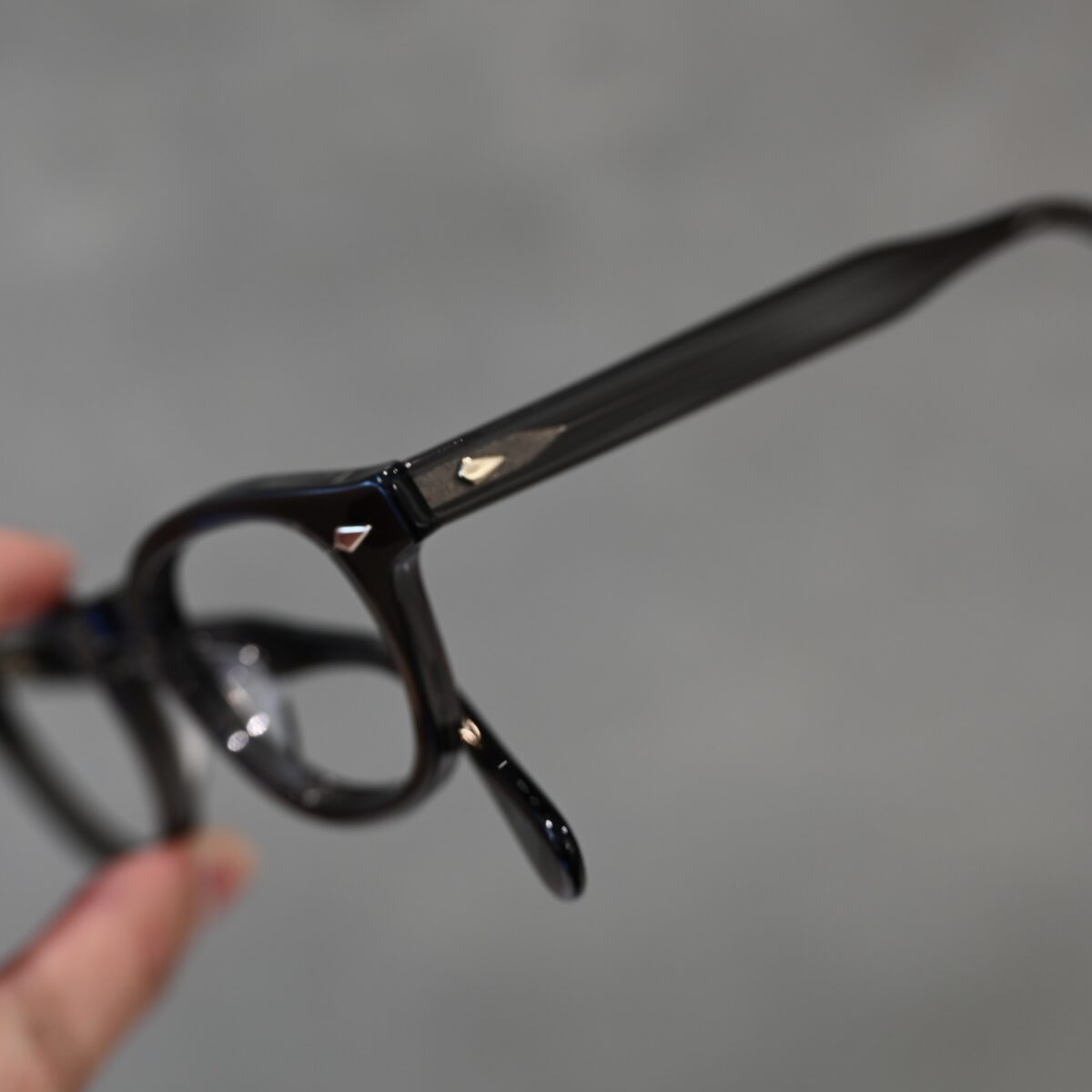 グレーの生地には、国産最高級アセテートメーカー〈タキロン社〉の素材を採用。その色出しは〈The LIGHT 〉によるオリジナルカラーで、JULIUS TART OPTICALの人気カラー「ダークブラックフェード」にも使用されているグレーとなり、普遍的に愛されるユニセックスカラーです。都会的なカラーで洗練された表情を引き立てながら、日常の着用にも馴染むカラーとして最適です。