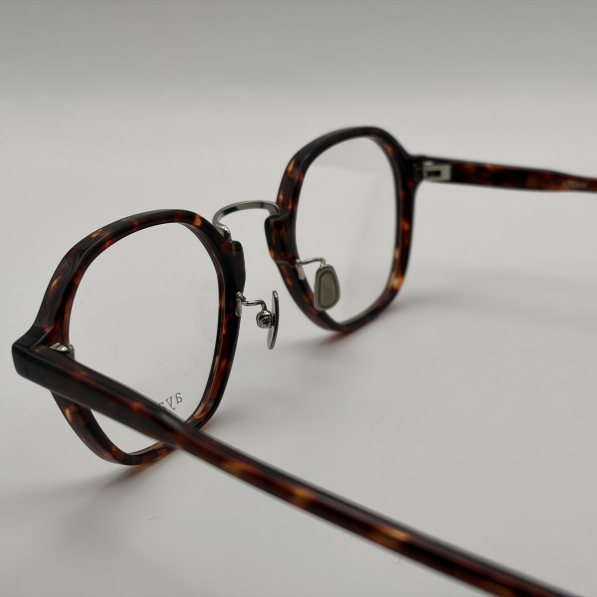 智とブリッジのラインを上方向に変更し、テンプルも細身なデザインに変更することで全体的にスッキリとした印象です。