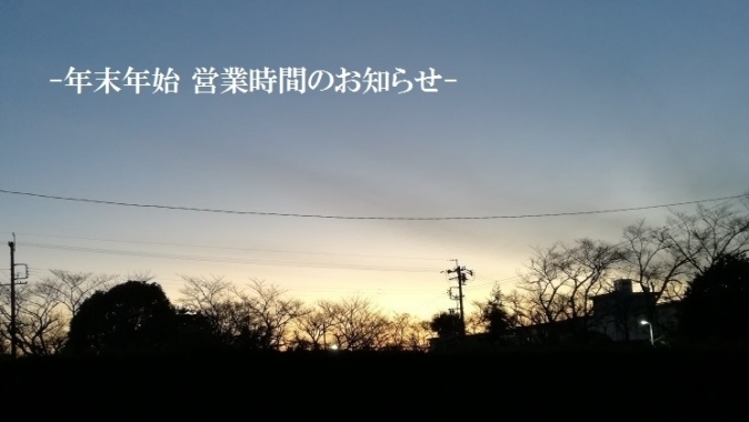 繰り返しの内容で恐れ入りますが、年末年始は営業時間が不規則となりますのでお知らせさせていただきます。