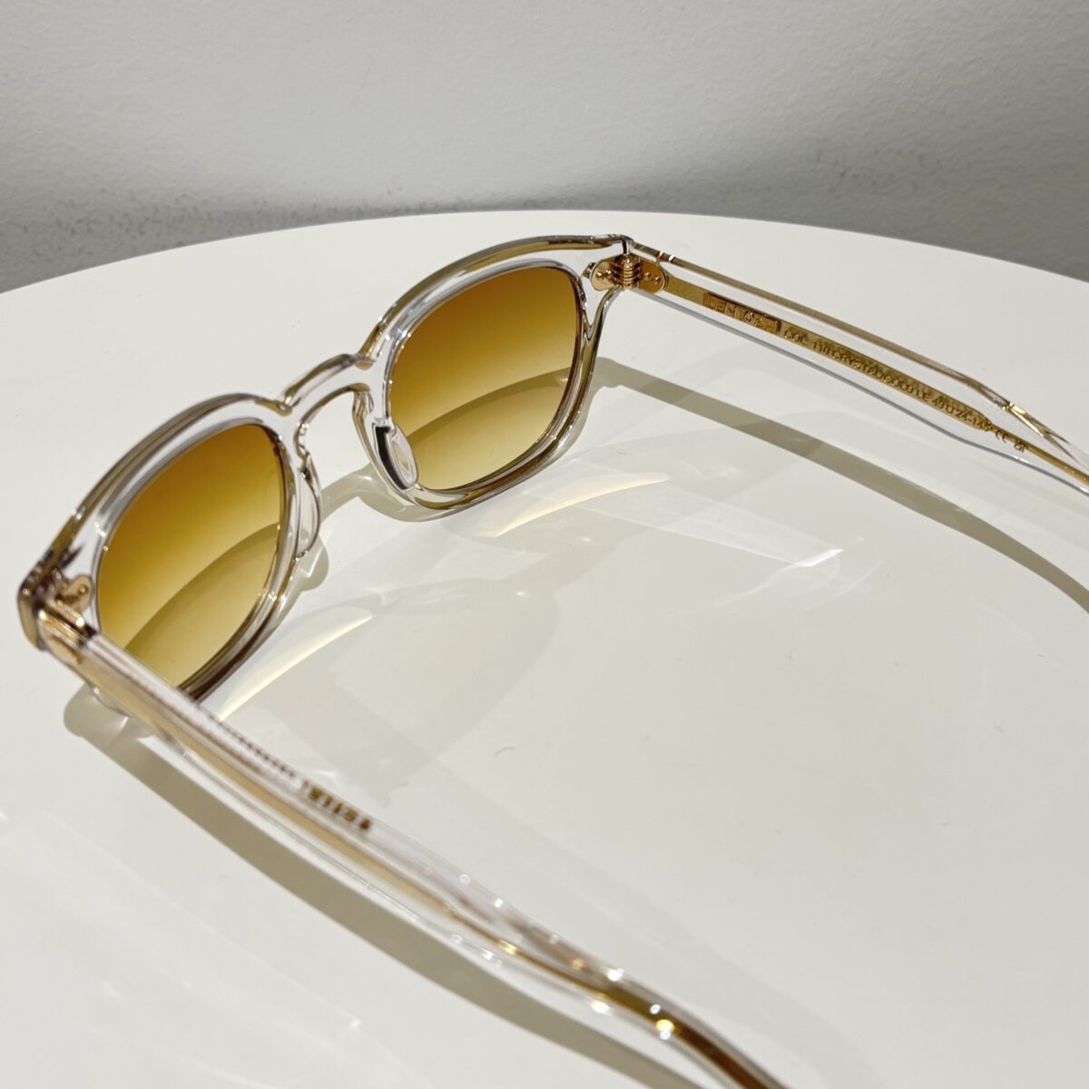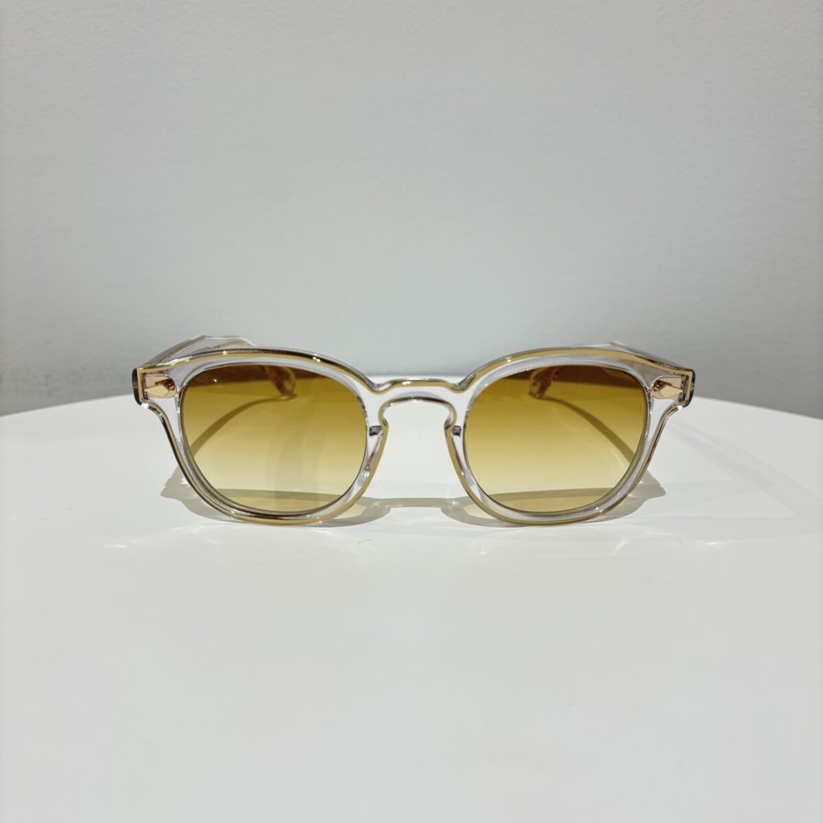 今回ご紹介するのは、クリアカラーのフレームにブラウンレンズを組み合わせたサングラス仕様。
