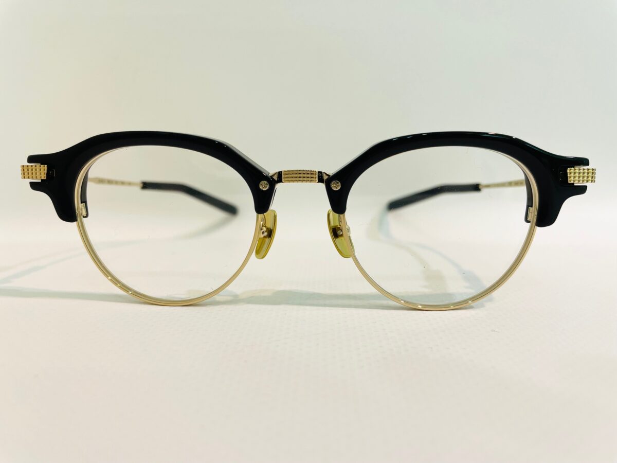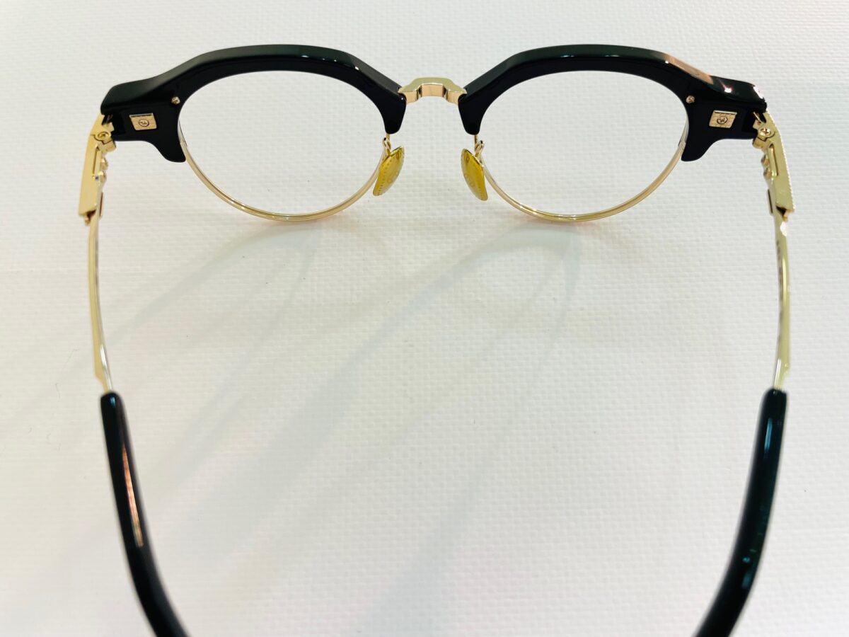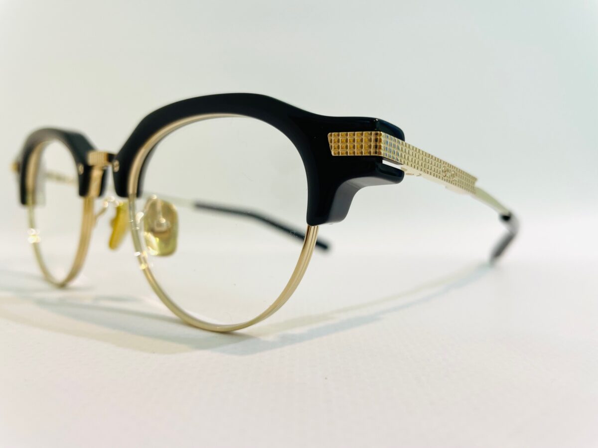 ブリッジとテンプルにはハイエンドラインのアイコンとなるブロックパターンが施され、