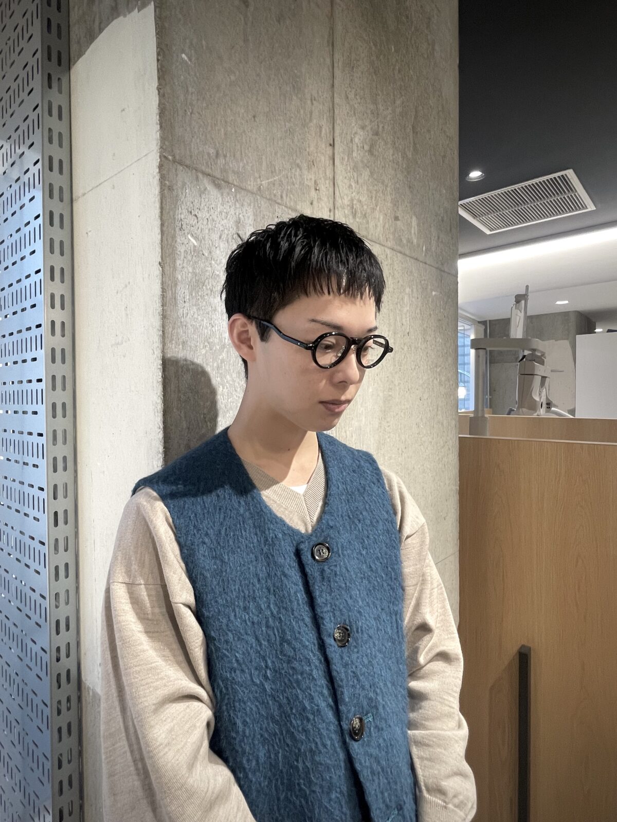 テンプルはぐにゃっと曲がったシェイプが横顔をなんとも不思議な雰囲気にしてくれます。