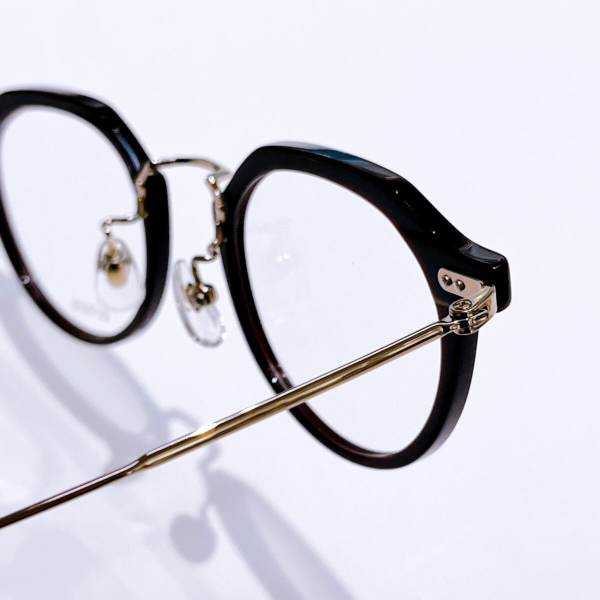 ブリッジやテンプルには上品なメタルパーツを採用し、軽やかで快適な掛け心地を実現しています。