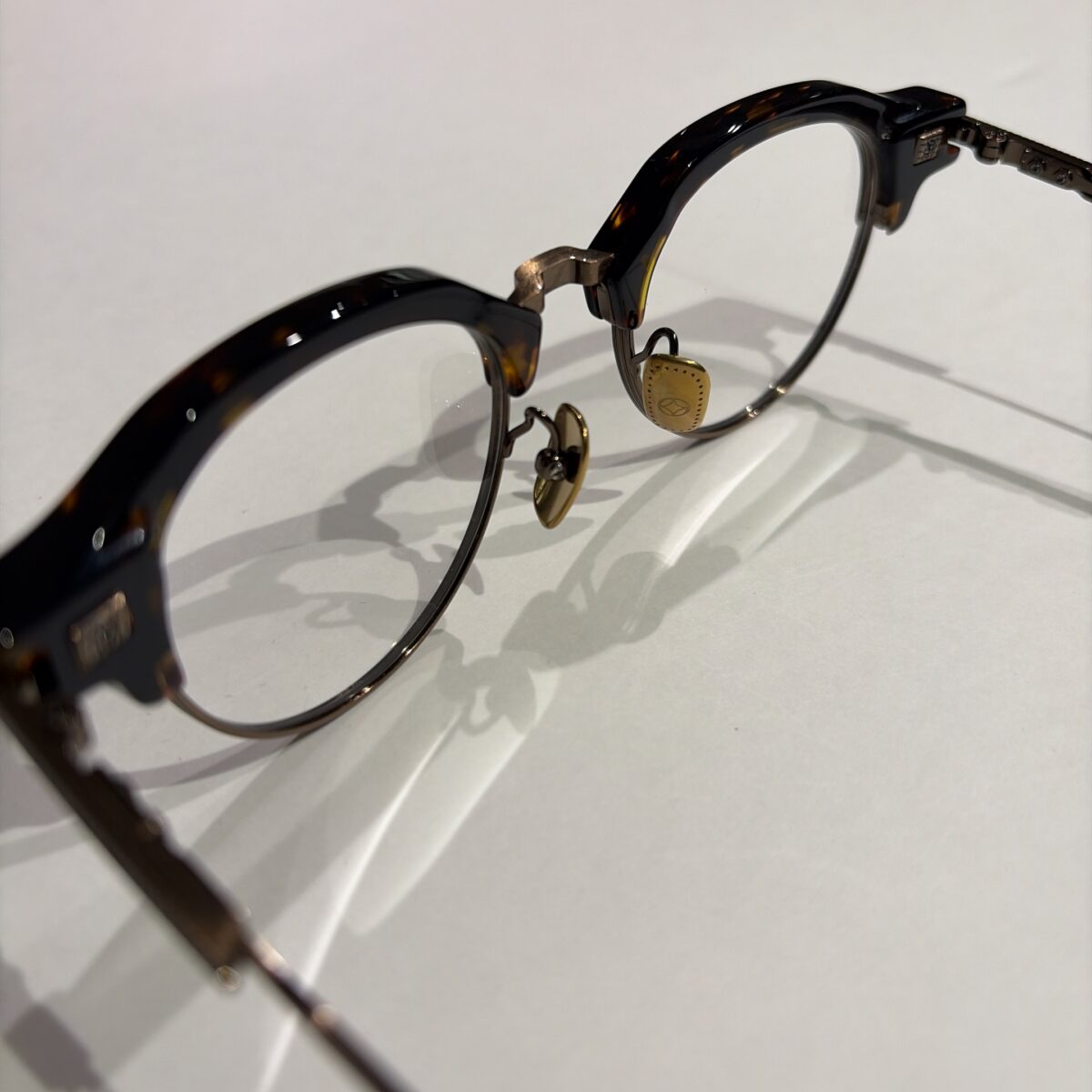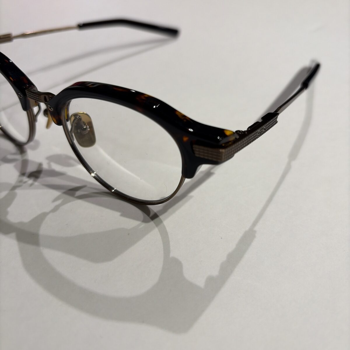 形はサーモントかつクラウンパントの形です。クラシックな印象を与えてくれるフレームなので仕事やプライベートなど色々な場面でも使いやすいです。