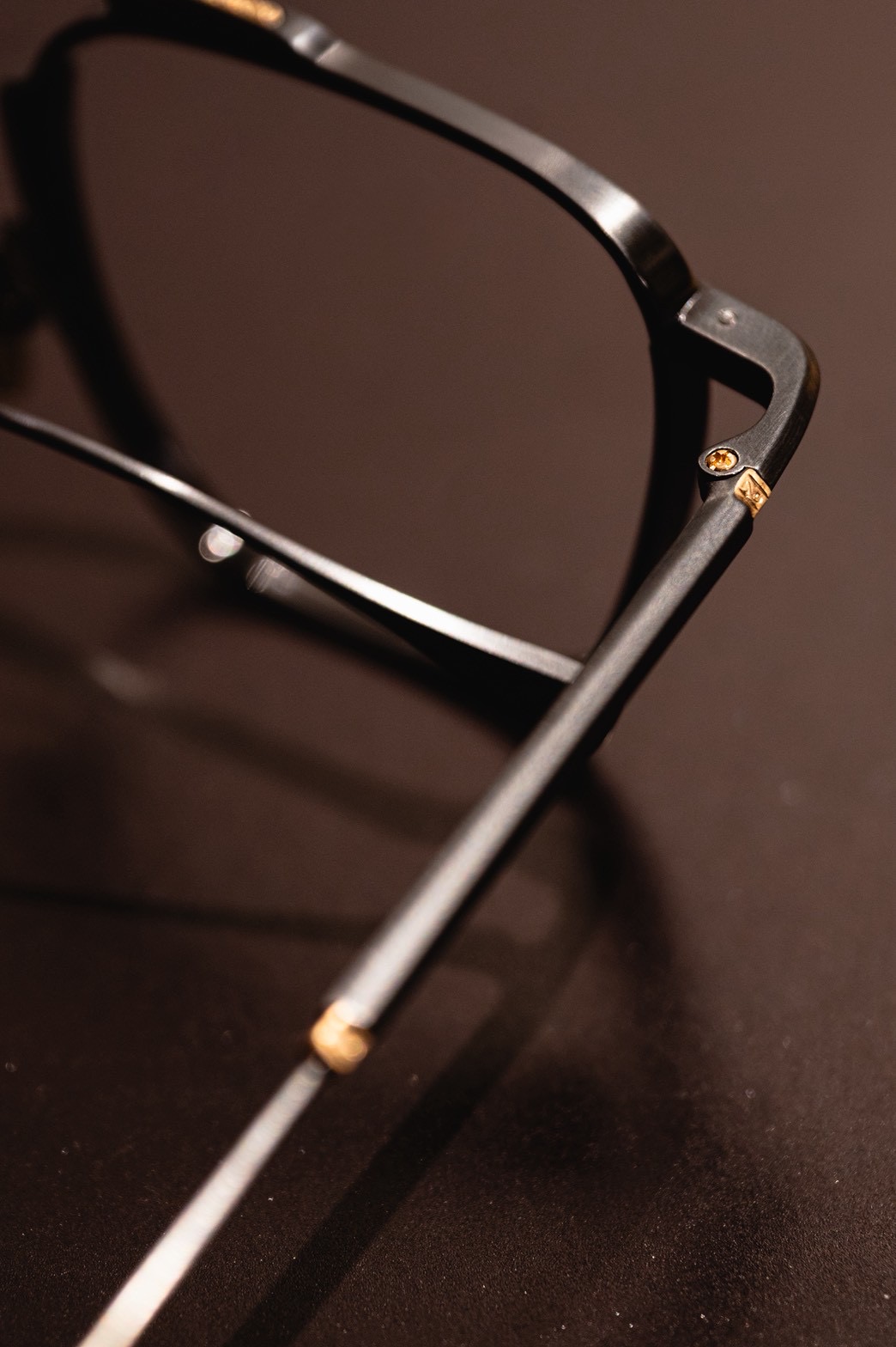 フルチタンの掘り出しで型取りされているフレームです。メタルフレームにしか生み出せない独特の重圧感が特徴的です。