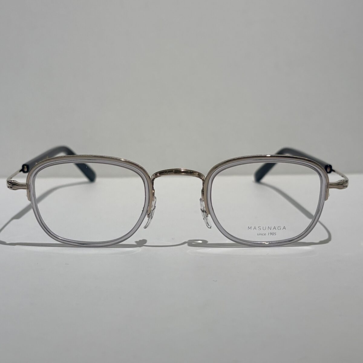 小ぶりのスクエア型が魅力的で僅かながらハーフリムとなっております。