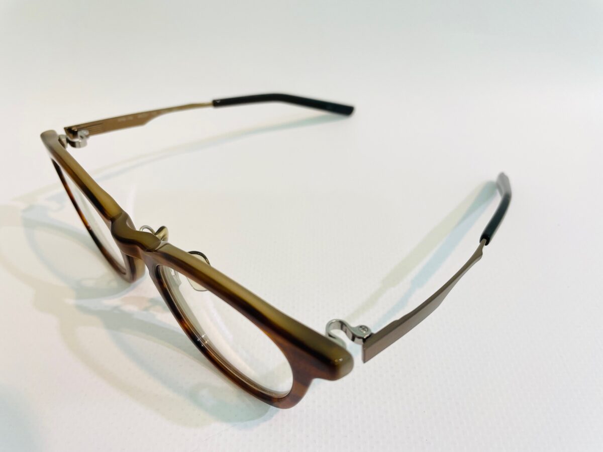 直線的でシャープな印象のメタルテンプルと相まって、掛ける人の魅力を引き立てつつ、