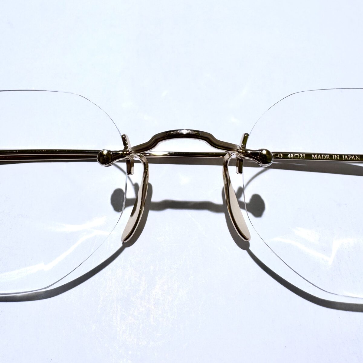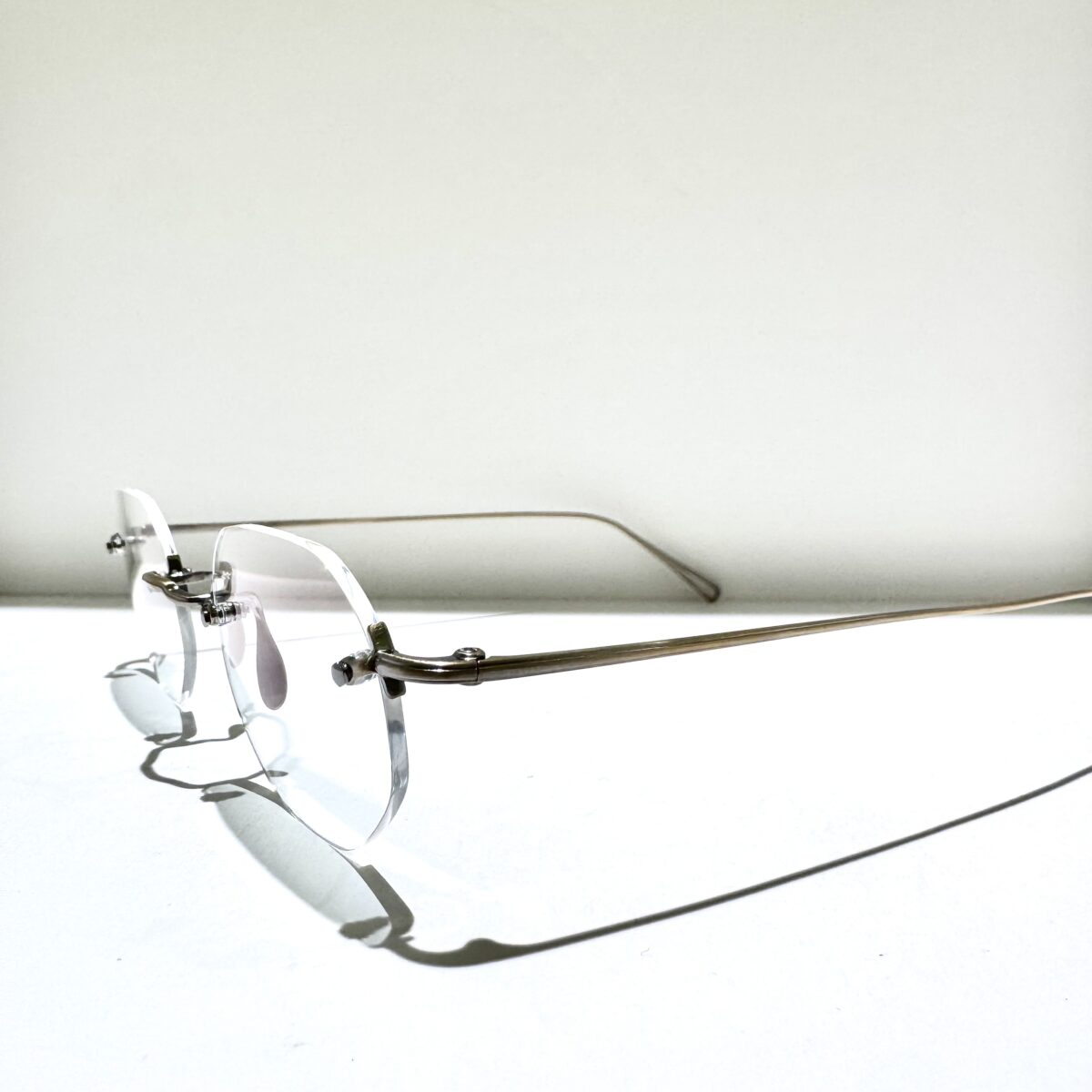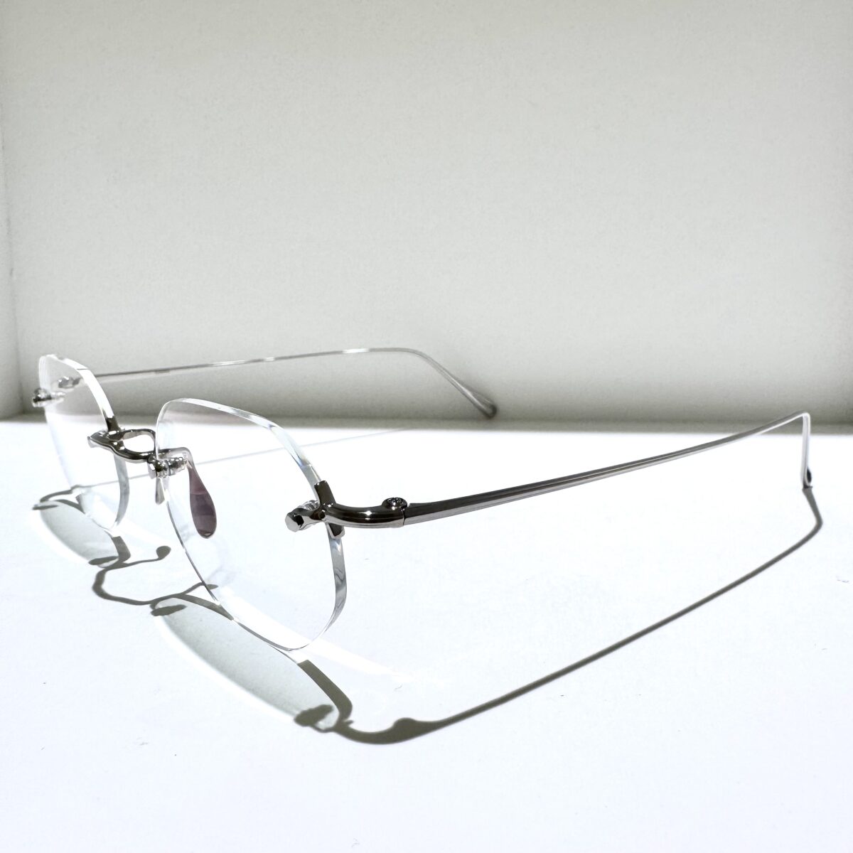 「3PIECE」同様、ノーズパッド・右テンプル・左テンプルの僅か3つのパーツだけで構成されたリムレスフレームです。