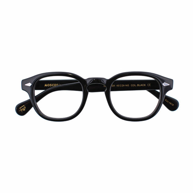 カジュアルなペイントパンツに、クラシカルな黒フレームを合わせたスタイル。