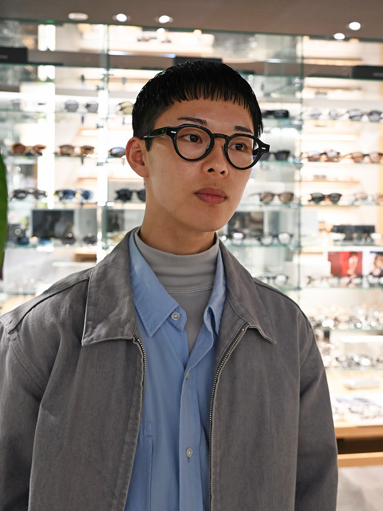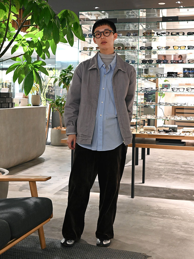 複雑なコーディネートでも、上品さと落ち着きを与えてくれるこの特別なモデル。眼鏡からコーディネートを考える楽しさを感じる事が出来ました。