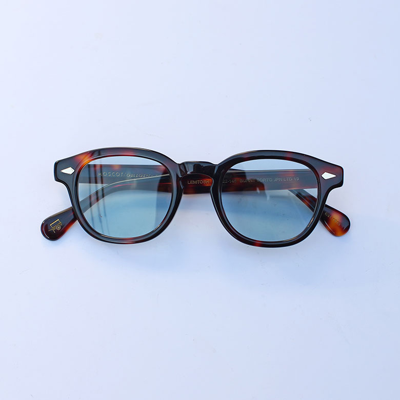 深めのべっ甲柄フレーム×ブルーレンズをカスタムしたMOSCOT!