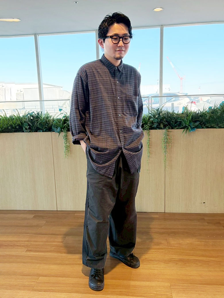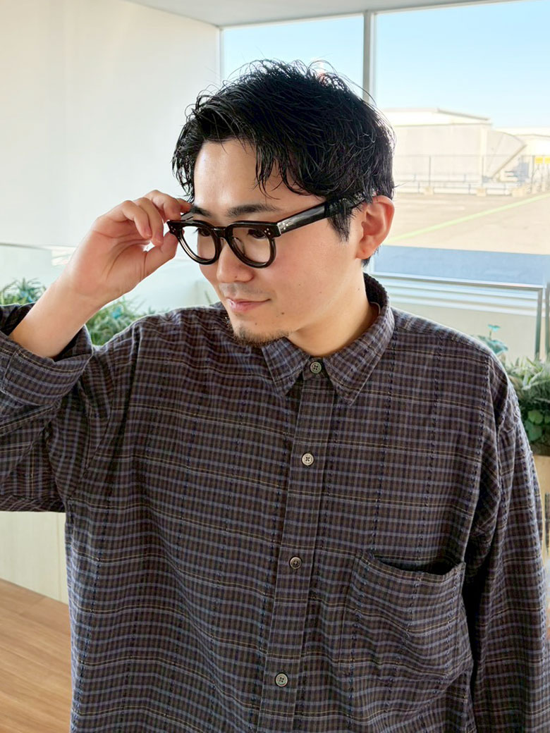 インラインのグレークリスタルとは違い暗めのダークグレーのアセテート生地ですので、ワントーンコーディネートで合わせました。