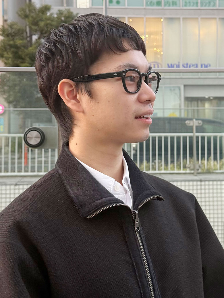 レンズには薄めのカラーを入れてイマっぽく、こなれ感が出るように意識してみました。個人的には15%程度の濃度が色んな服装に合わせやすいです。