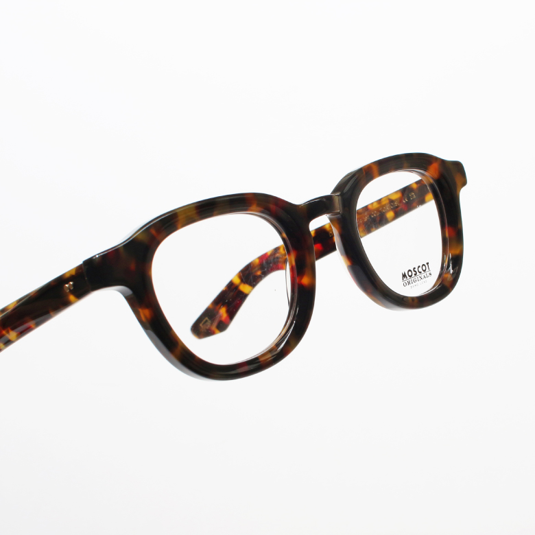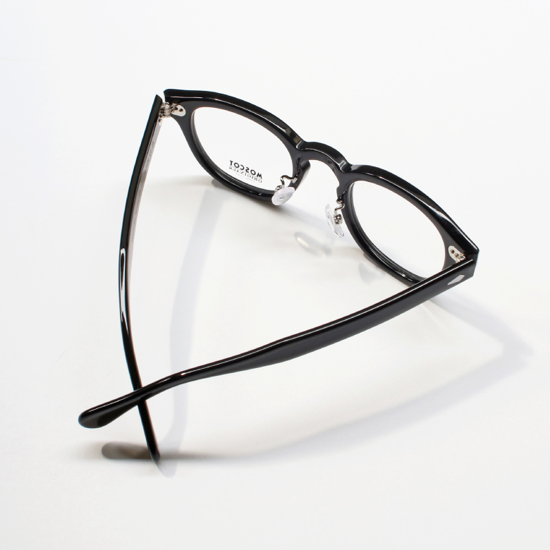 王道のウェリントンシェイプのセルフレーム。世代を問わず人気のMOSCOTの中でもベストセラーアイテムです。安定感のある「鼻盛りタイプ」。
