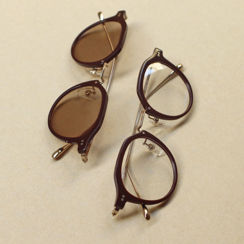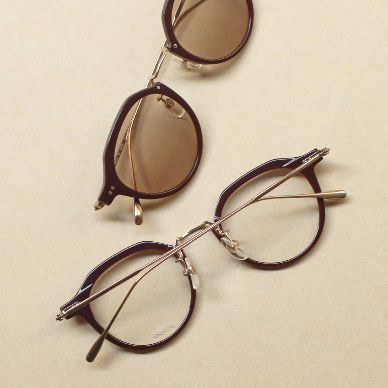 コンビネーションモデル「SIBYL」はフロントは程よいボリューム感がありながらも、過度にならず顔なじみの良いバランス。ブリッジやテンプルには上品なメタルパーツを採用し、軽やかで快適な掛け心地を実現しています。