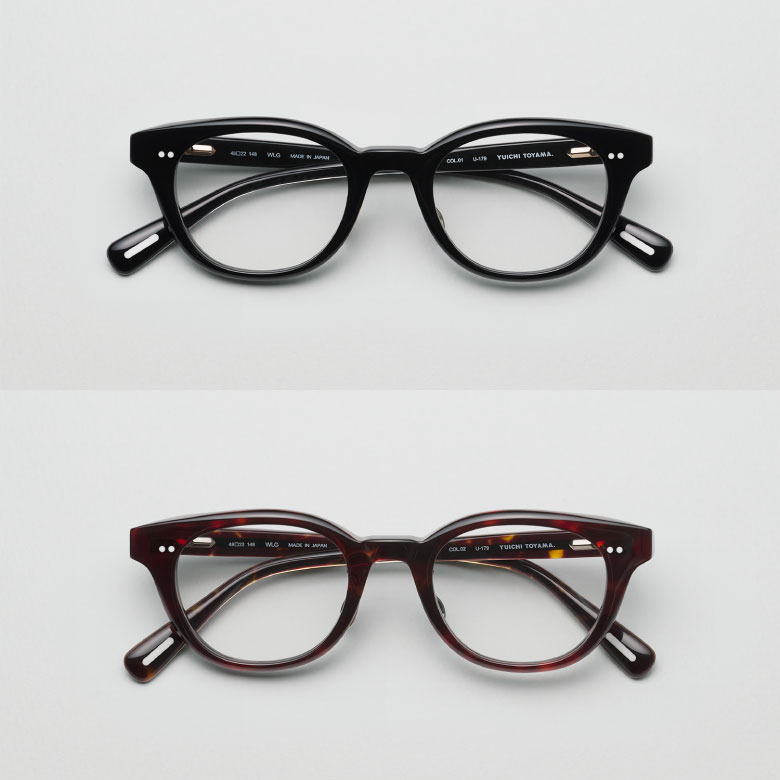 アセテートに適度なボリュームを持たせながら、メタルのヒンジやテンプル芯にはダブルアローをイメージしたオリジナルの造形的なパーツを採用。ウエリントンの持つ普遍的な魅力と、洗練されたモダンな印象が合わさったYUICHI TOYAMA.らしいニュークラシックデザインを提案します。